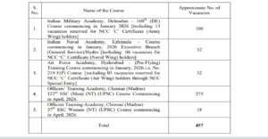 Union Public Service Commission (UPSC) CDS Exam I Recruitment 2024: Vacancy Details Total: 457 Posts